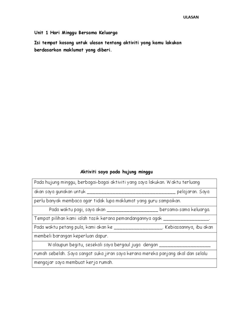 Unit 1 Ulasan Aktiviti Saya Pada Hujung Minggu Pdf