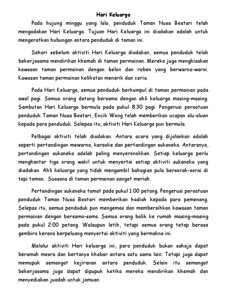 Penulisan Karangan Aktiviti Bersama Keluarga Di Hujung Minggu Murid Pdf